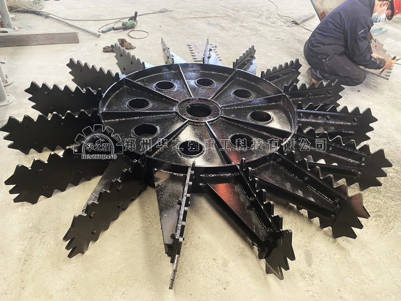 轮盘式翻堆机以旋转轮盘为核心工作部件,通过轮盘上的犁刀式齿爪切削、翻动物料,作业时机动性较强,无需固定发酵槽。其特点是翻抛均匀度高,能有效打破物料团聚体,且能耗较低,对稻壳、秸秆等蓬松物料适应性强。该设备适合中等规模生产,尤其适用于多批次、小批量的发酵作业,年产量1000-3000吨的有机肥厂使用较为广泛。但面对含水量过高或粘性大的物料时,易出现齿爪缠结问题,需提前进行物料预处理。